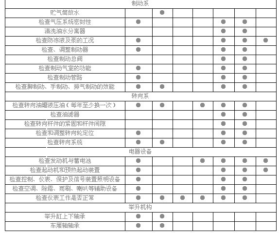 i.檢查車廂與車架鉸接、連接部分是否磨損、變形,檢查軸套并加注潤滑脂。